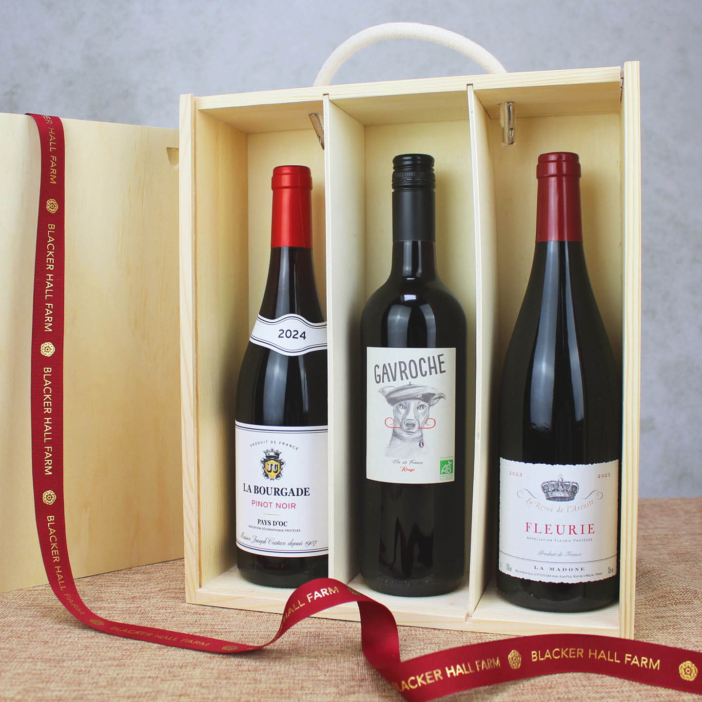 Presented in a premium wooden wine box, the French Reds Hamper makes an ideal gift for wine lovers or a charming way to explore the flavours of France.